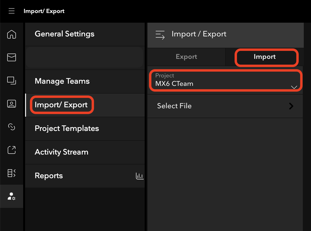 - Click the Import tab at the top, then select the Project from the dropdown or leave as All Projects.