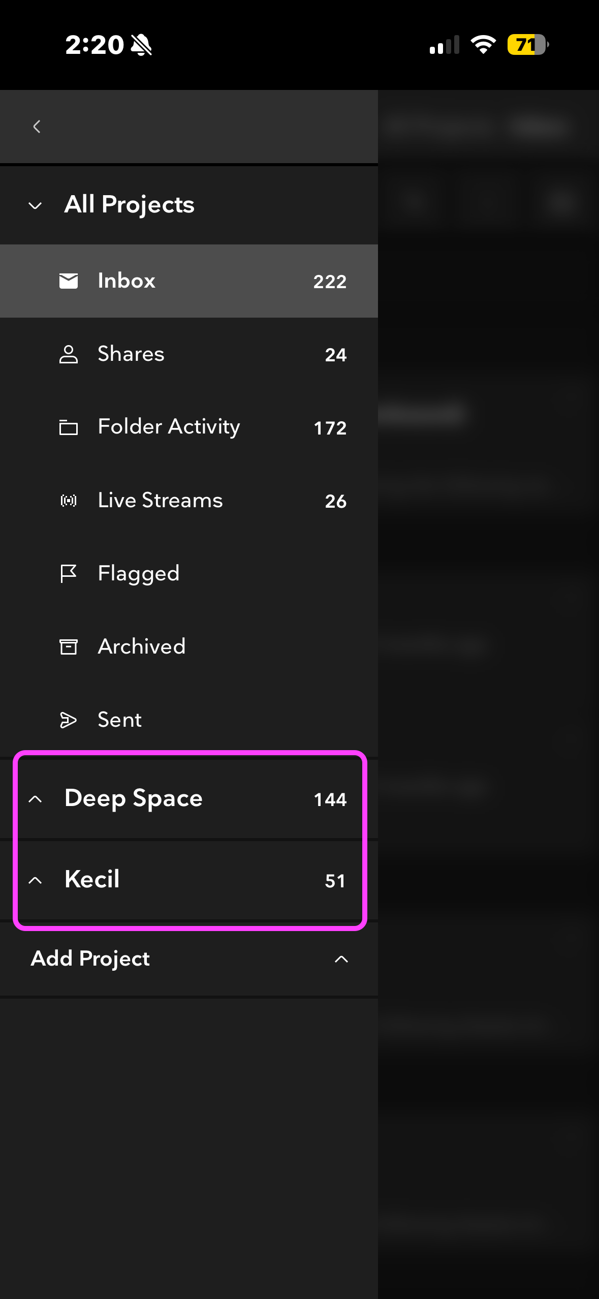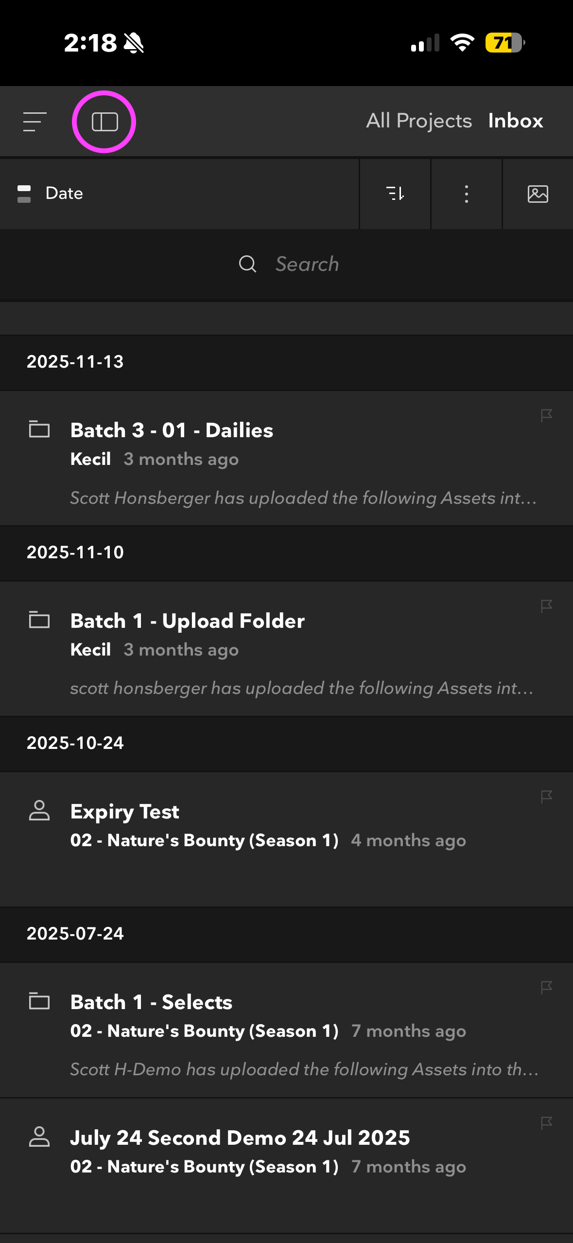 Selecting a project will bring you into the top level of its folder structure. Tap a folder to go into it and you'll find any subfolders it contains listed at the top. Below that are all the assets that have been added to the folder, orgainized into their respective batches. From there, tap any asset to start viewing it.