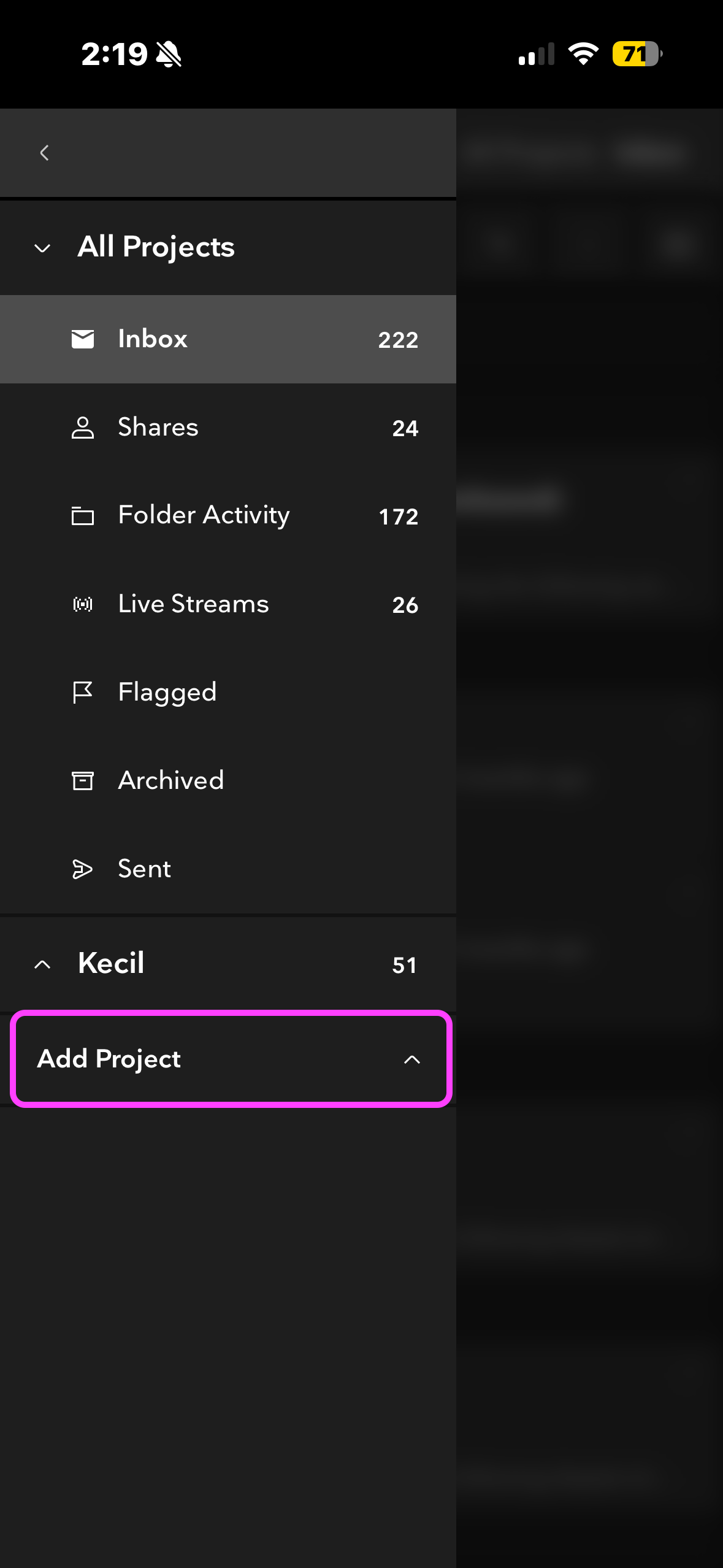 If you'd rather dive into the folder structure of a project to get to a clip, you can start by tapping the main navigation icon at the top of the app.