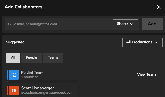 When you do, you’ll see the Add People modal pop up, which will allow you to invite individual users, or even entire teams, to collaborate with you on creating and sharing this Playlist.
