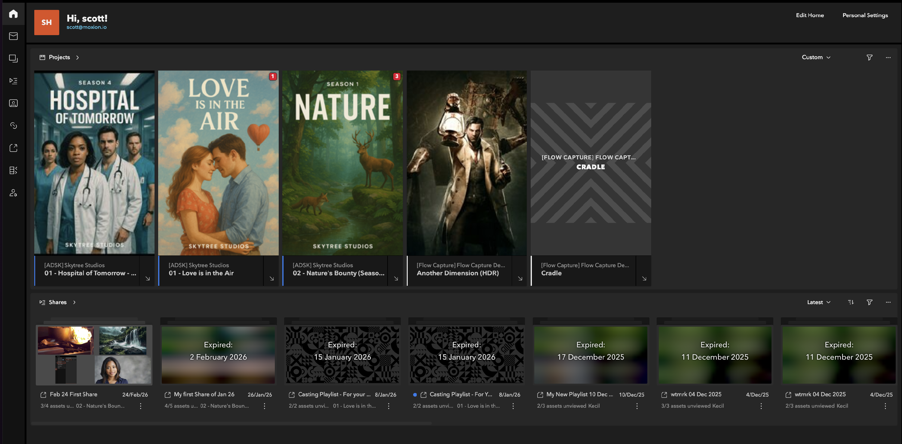 Whether you’re tracking uploads of Dailies for your Project or looking for the latest content shared with you for review - this is the place to be. With Home you can get an overview on specific activity across Flow Capture and jump right into the action.
