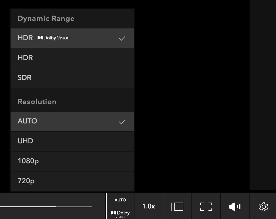 With this update we also include the ability to switch between different supported modes of dynamic range (where your device is compatible with one or more methods of HDR playback).