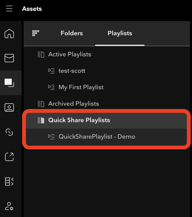 These Quick Shares will also create a Playlist so that you can adjust or edit them as needed, or, re-share via a standard Share workflow. They will be located in a new "Quickshares Playlist" section under Playlists: