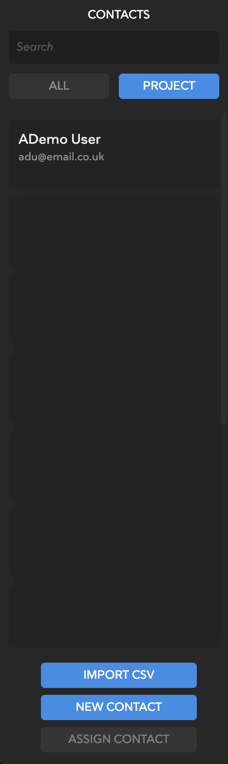This Tab displays all of the Contacts that have been added to the Project you are currently working in, and feeds directly into the All tab.